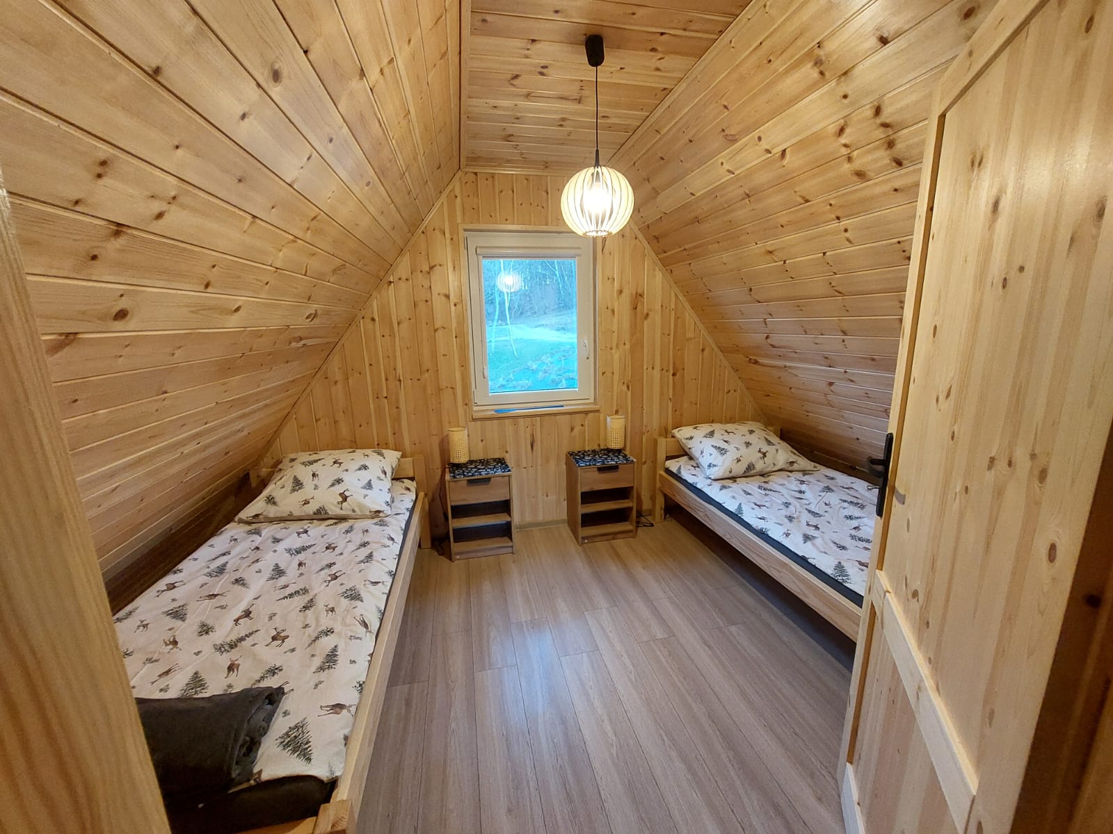 Miejsca noclegowe: komfortowe duże łóżko o szerokości 140 cm, dwa pojedyncze łóżka 90 cm oraz jedna rozkładana sofa.